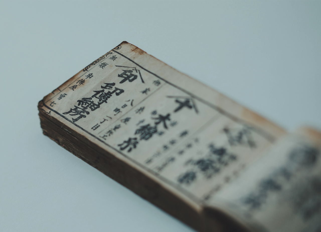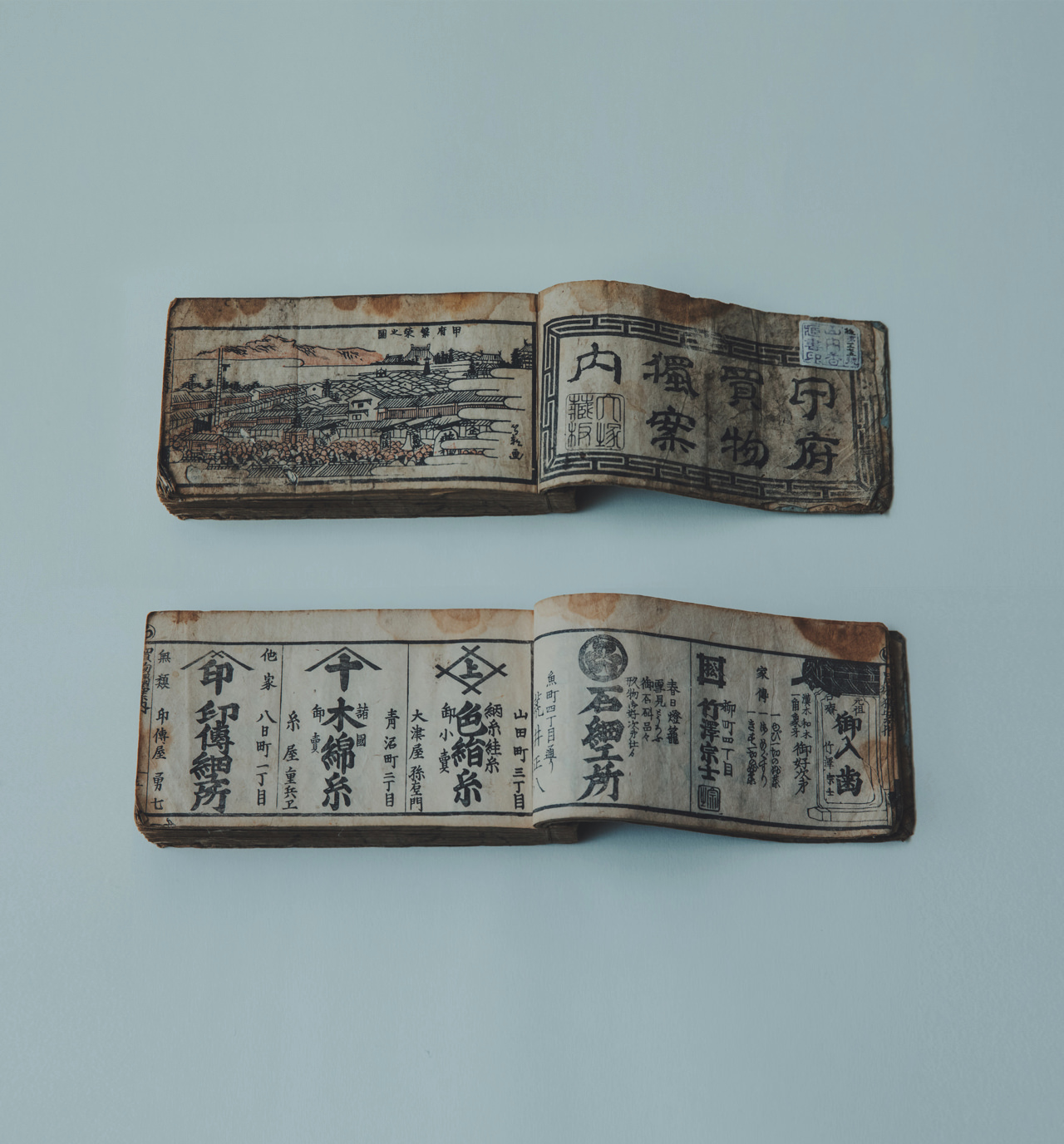 江戸後期の『甲府買物獨案内』(1854年刊) によると当時の甲府城下には「印傳屋勇七」をはじめ3軒の印伝細工所がありましたが、時の流れの中で印傳屋だけが唯一残りました。