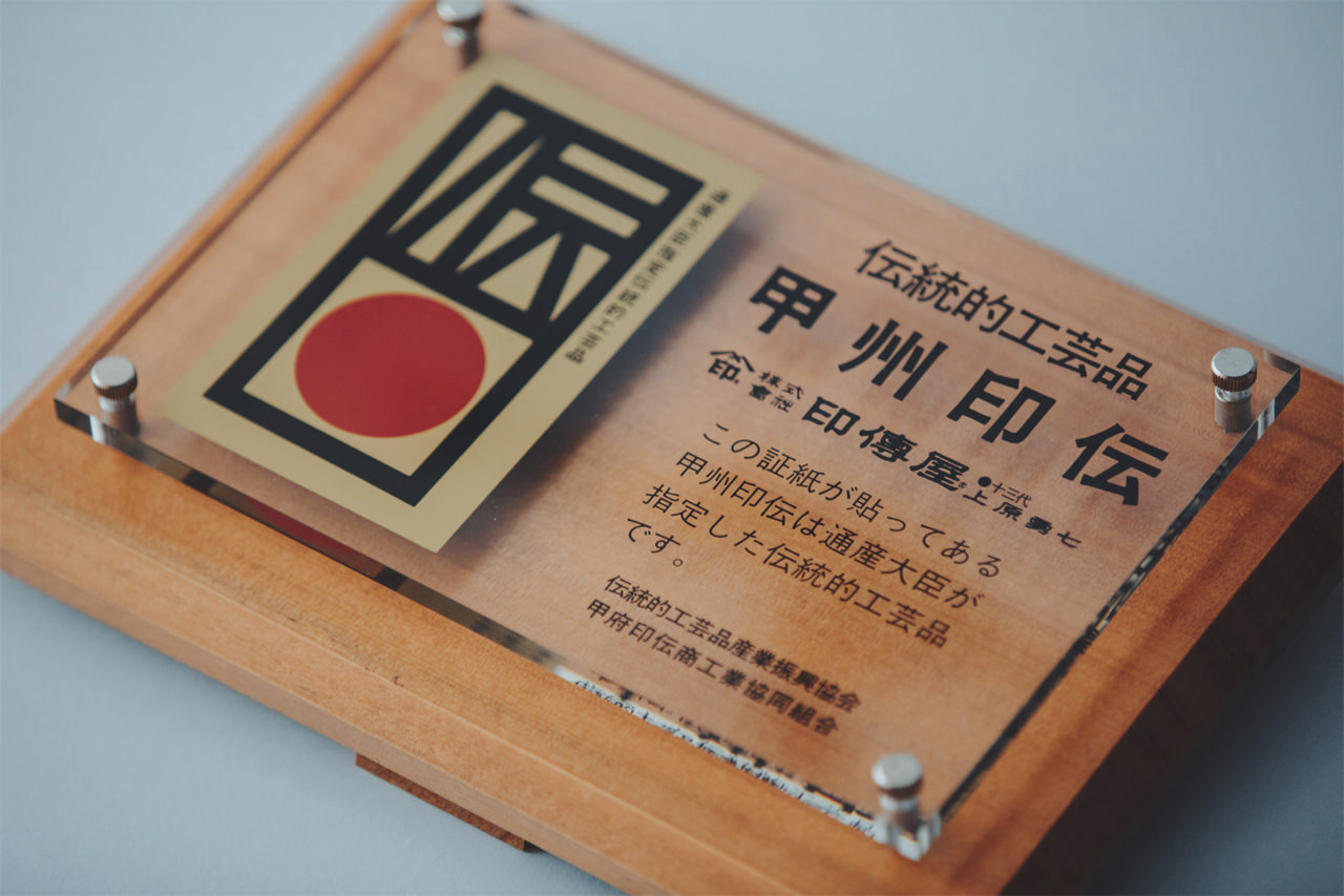 明治時代に印傳屋は内国勧業博覧会にて褒状を受賞、家業の傍ら特産品の水晶や印材販売も手掛けました。 その後甲府空襲、戦後の復興を経て、それまで家長のみに口伝され門外不出とされてきた印伝の技法を十三代から広く公開し、印傳屋は甲州印伝の普及を担ってきました。