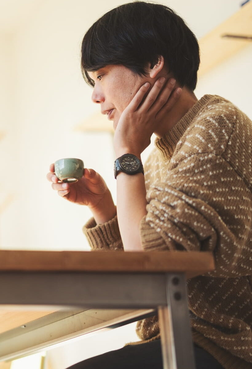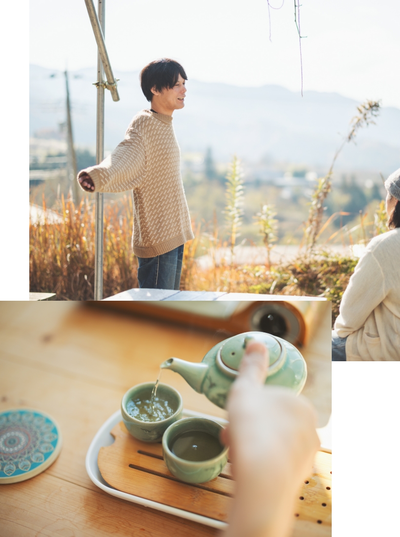 ヒラクさんの今の暮らしをならすと、1年の3分の2は出張。自宅のある山梨で過ごせる時間は多くない。だからこそ、甲府盆地を見渡せる里山での生活は、自分を保つためにも必要なものだという。 「山梨って、明るくて、風通しがよくて、20歳前後に少し暮らしていたフランスの空気に近いものを感じるんです。ここでお茶をしながら景色を眺めるのがまた最高で、人工物がほとんど見えないじゃないですか。都会に行くと、人が多いだけじゃなくて、建物も、光も、人がつくったものばかりに囲まれているのが辛くって。 今見ているような、自然が8割を占めるような環境にいると、結局自分も景色の一部で小さな存在だと思えて気持ちが軽くなります。全体重をかけて仕事に向き合ってしまう自分にとって、自分を追い詰めすぎない、相対化できる場所を持っていることは大事な気がしています」