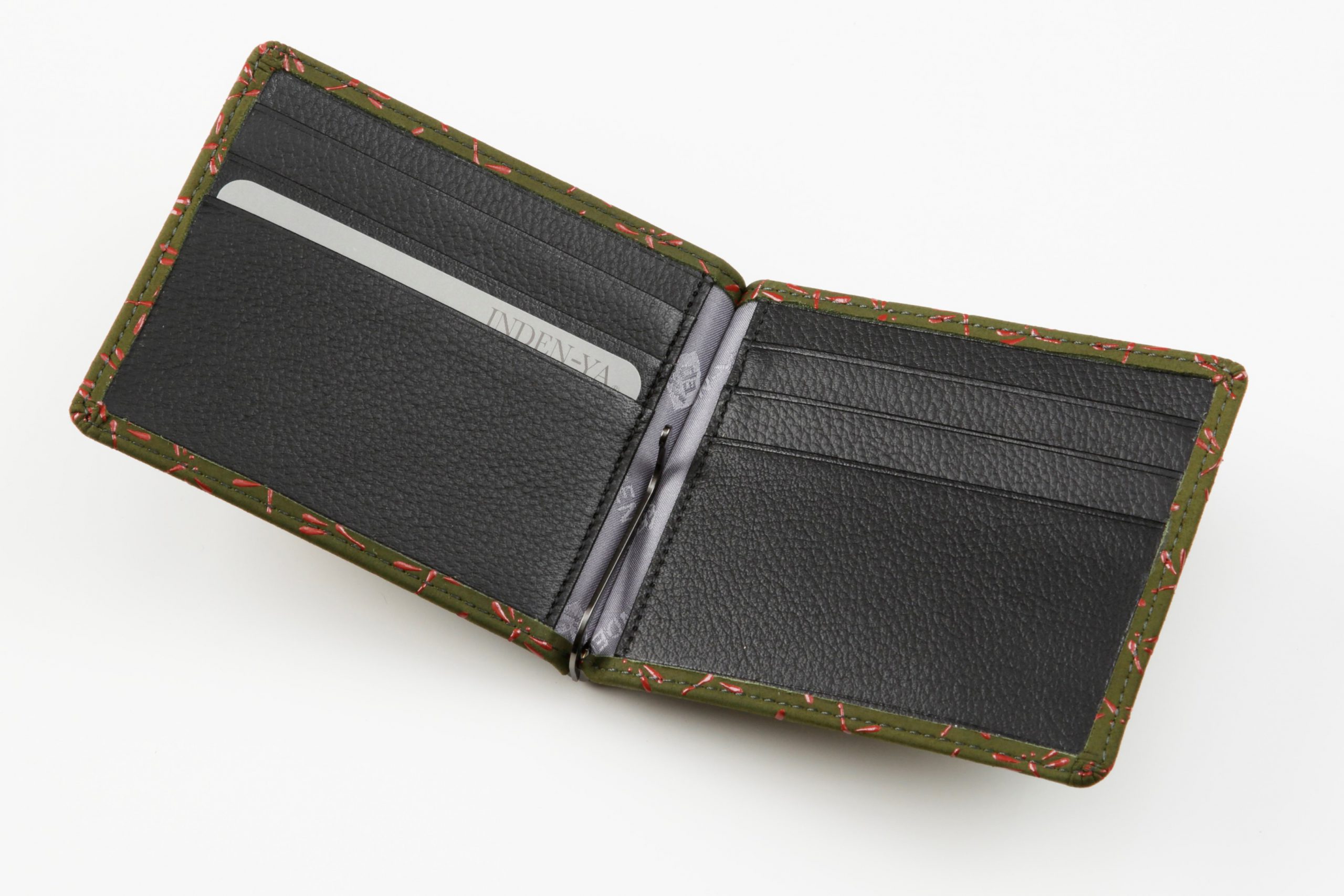 内側にクリップが付き、紙幣を挟める仕様になっています。