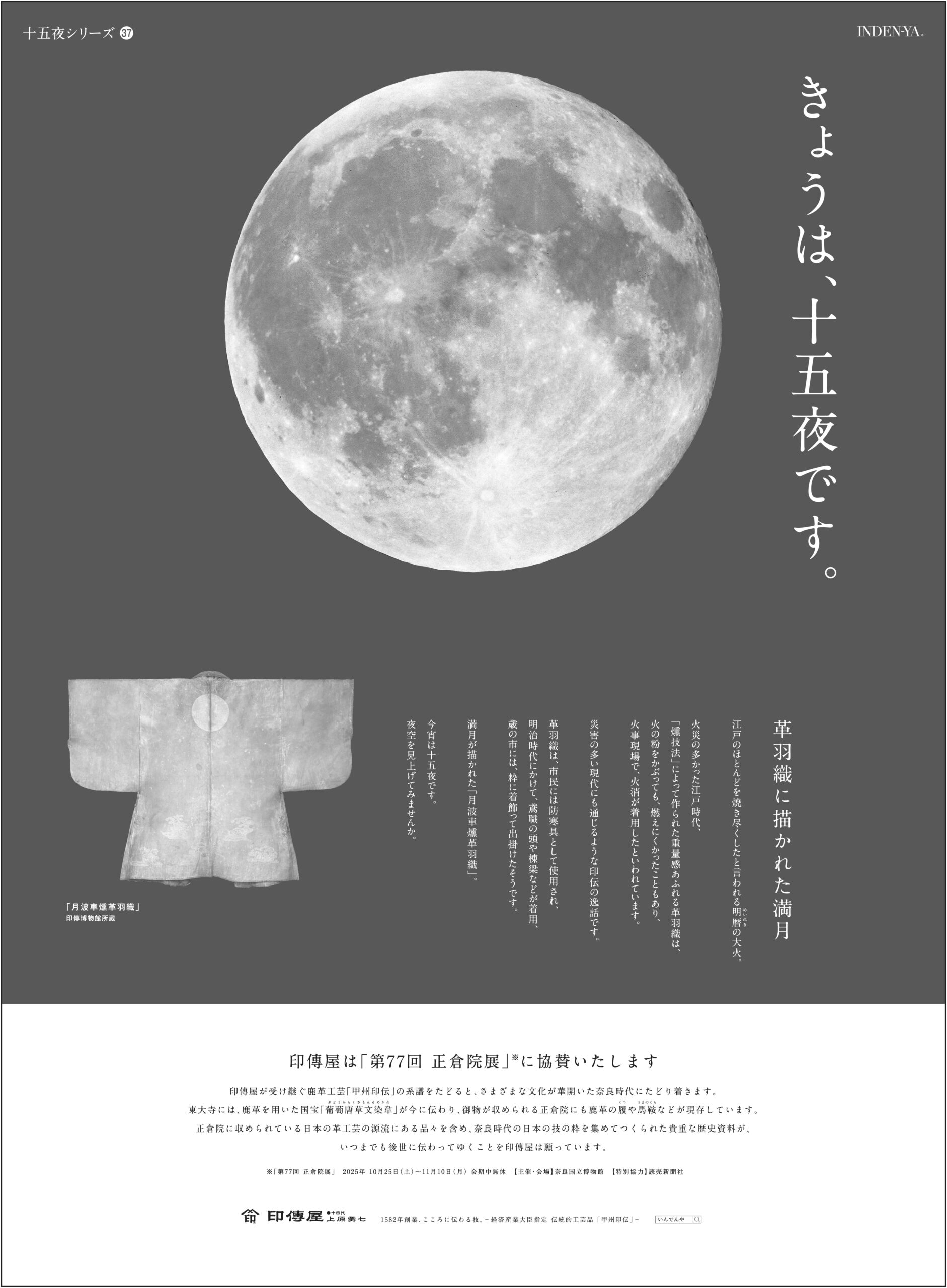 印傳屋では、日本の四季を愛でるこころを大切にしたい想いから、毎年「十五夜」にあわせて企業メッセージをお届けしています。