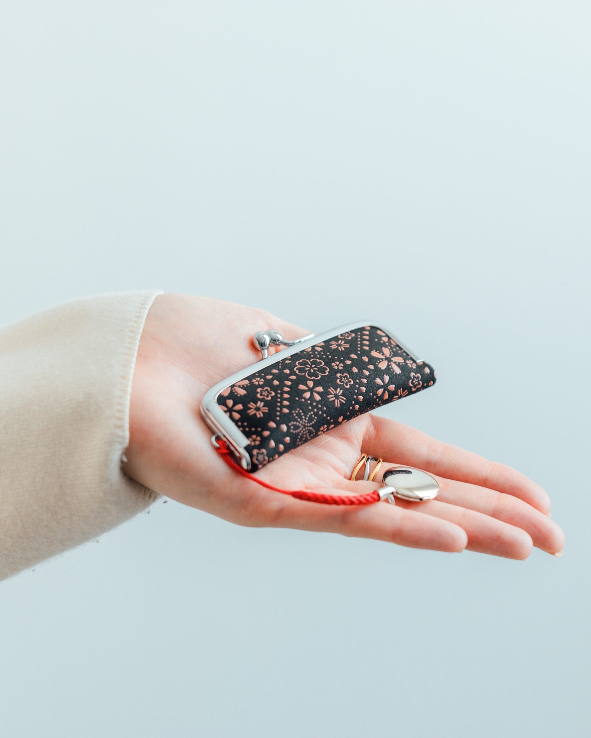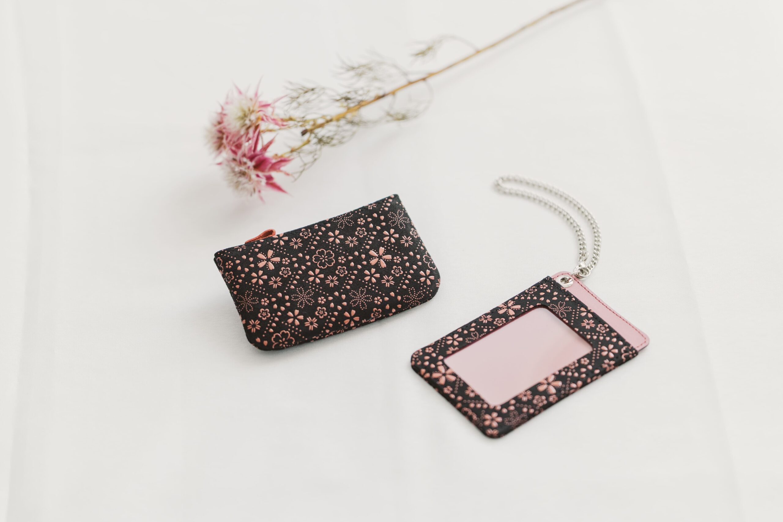 厳しい冬をこえて訪れる爛漫な春を心待ちにしながら、ひとあし早く手のひらに開く印伝の桜をお愉しみください。