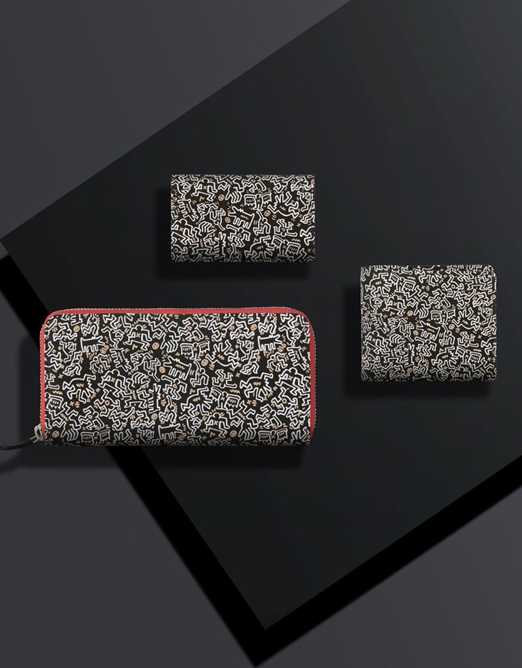 「キース・ヘリングのアートの力を印伝に込め、人々の進む力に」。その実現に向けて、印傳屋はこれまでの技を見直し、ヴィヴィッドな色彩表現と、タッチを忠実に再現する方法を新たに確立。伝統的工芸品の甲州印伝としての表現の幅を広げ、キース・へリングの世界観を映す印伝が完成しました。