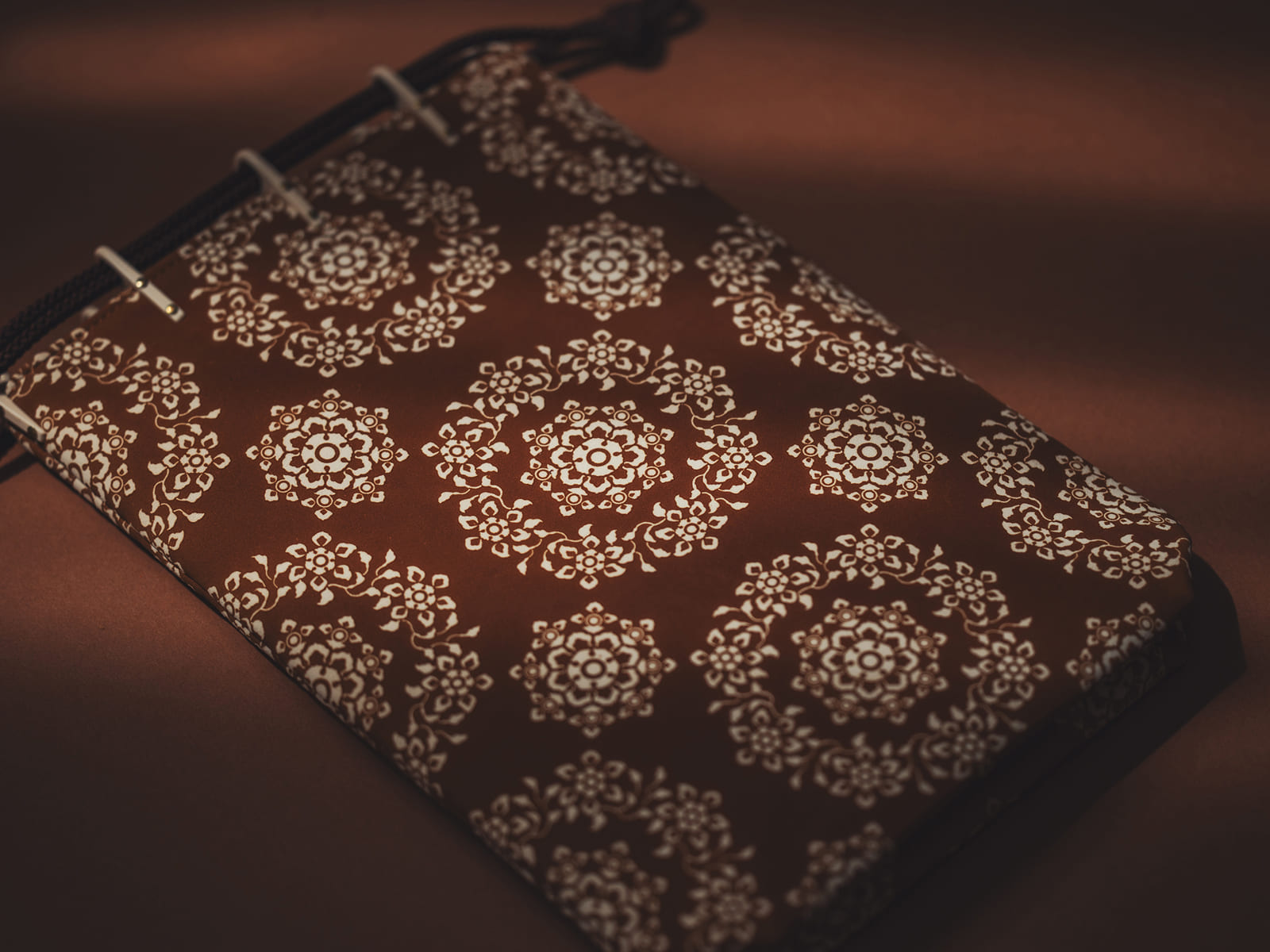 機能内側:文庫本(高さ~150mm、厚さ~18mm)に適応/両方に本の端を差し込んで使用/ポケット×1/同柄の栞付き